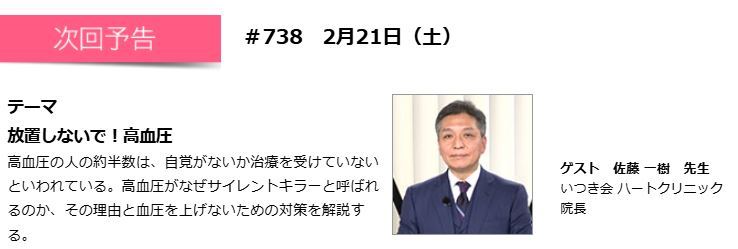 2月21日(土)20時54分からBSテレビ東京「教えてドクター!家族の健康」に院長の佐藤一樹医師が出演します。テーマは「放置しないで!高血圧」です是非ご覧ください。https://www.bs-tvtokyo.co.jp/kazokunokenkou/?_gl=1*1tnb9o7*_ga*MTYxMDQ4MTUzMS4xNzcwNDQwMTI2*_ga_VLBDNDPMWJ*czE3NzE0MTcyODQkbzIkZzEkdDE3NzE0MTc0OTYkajYwJGwwJGgw